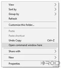 Open the folder where the modified ‘boot.img’ file was downloaded. Press SHIFT key and right-click on a space inside this folder. Select Open command window here, from the menu that appears.