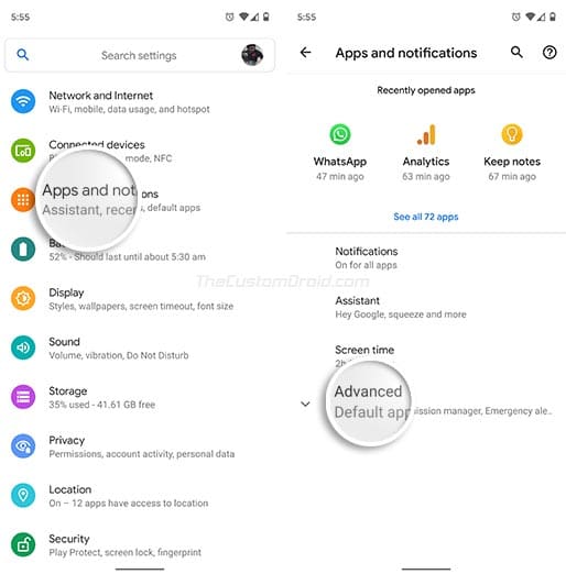 - Tap on ‘Apps and notifications’.
