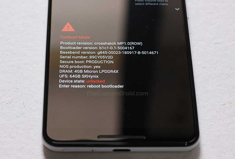 - Now, hold the Volume Down and Power buttons together to enter Bootloader Mode on Pixel 3.